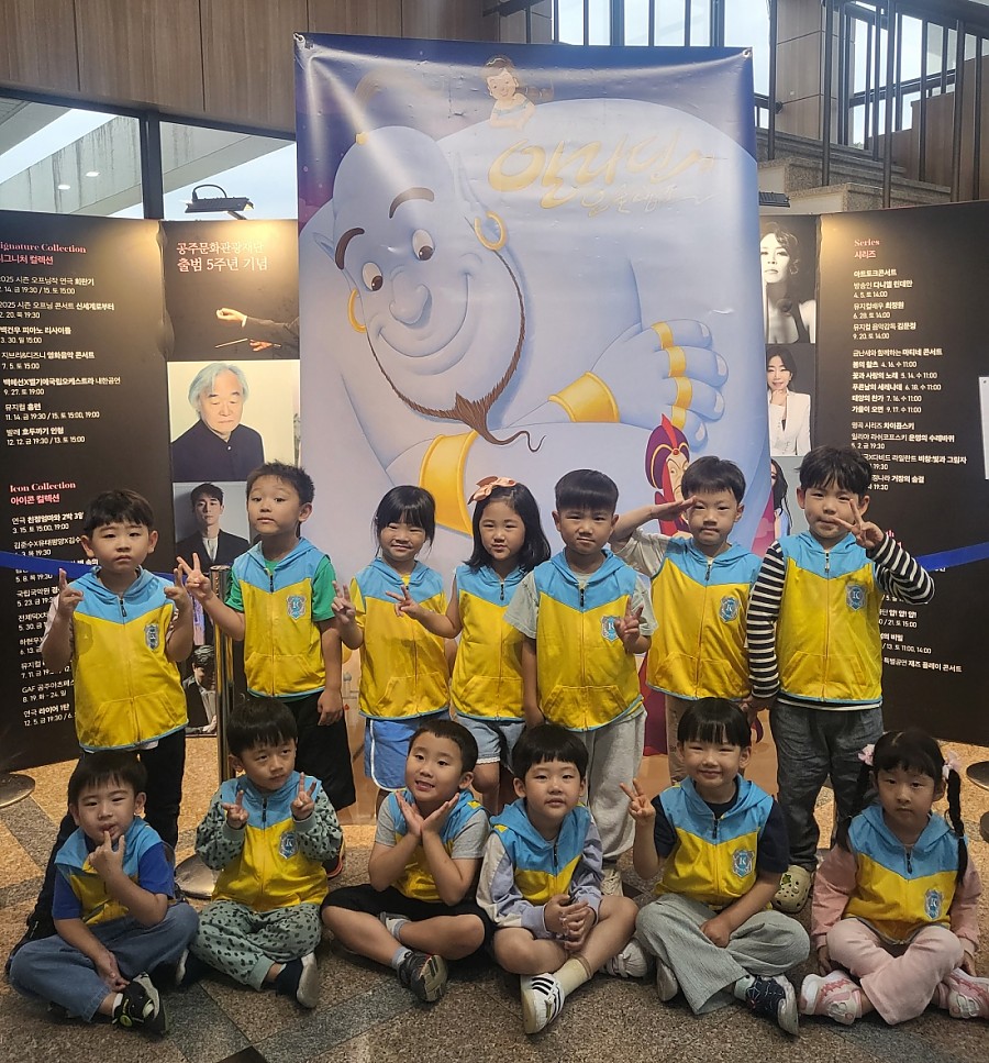 '알라딘과 요술램프' 뮤지컬 공연관람 페이지 정보 작성자 하나어린이집 작성일25-09-25 21:11 조회928회 댓글0건 본문 공주예술문예회관에서 뮤지컬 '알라딘과 요술램프' 공연을 관람했습니다. 환상적인 이야기 속 모험을 함께하고, 생생한 무대 예술을 통해 상상력과 감성을 키우는 즐거운 시간이었습니다. 댓글목록 등록된 댓글이 없습니다. 목록