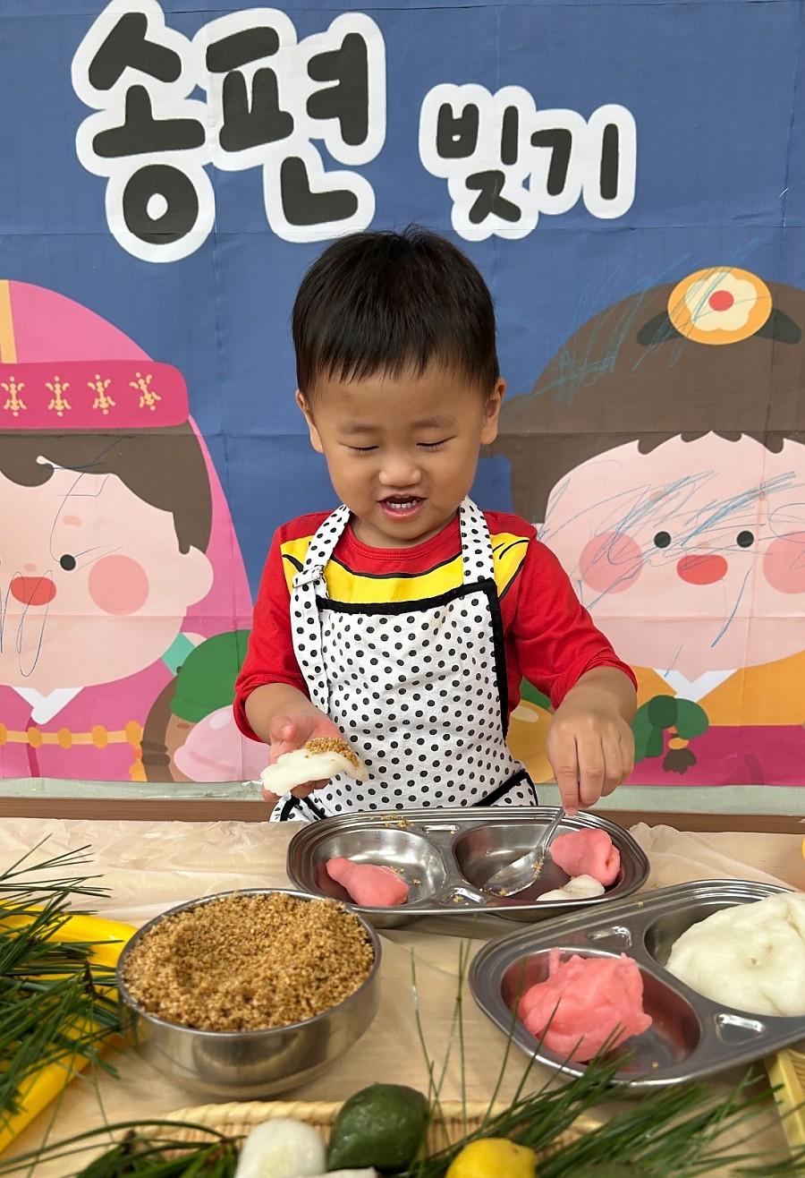송편 만들기 페이지 정보 작성자 하나어린이집 작성일25-10-13 15:53 조회662회 댓글0건 본문 우리 전통 음식인 송편을 직접 빚으며 민속 문화를 체험하는 뜻깊은 시간이었습니다. 우리 이아들이 손으로 빚는 즐거움과 함게 고유의 명절 문화를 이해하는 소중한 경험이었습니다. 댓글목록 등록된 댓글이 없습니다. 목록