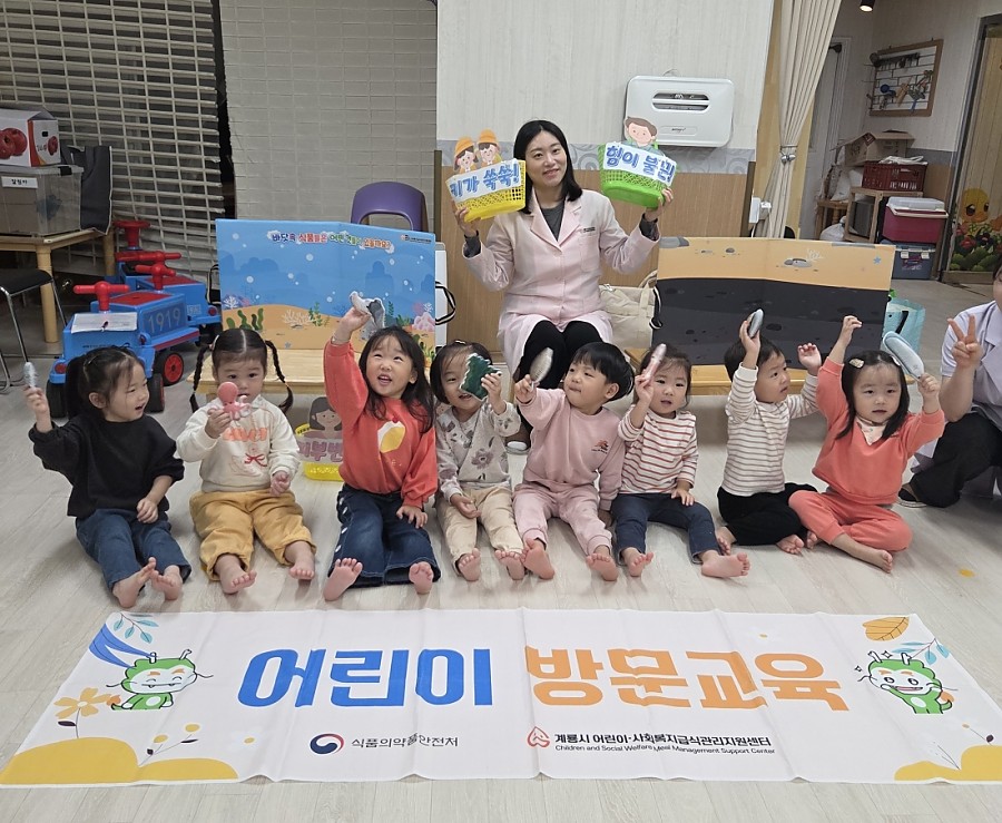 계룡시 어린이 사회복지급식관리지원센터에서 ‘어서와, 바다는 처음이지’라는 주제로 바다 식재료(해산물, 해조류 등)의 종류와 영양소에 대해 배우는 어린이 방문교육에 참여하였습니다.