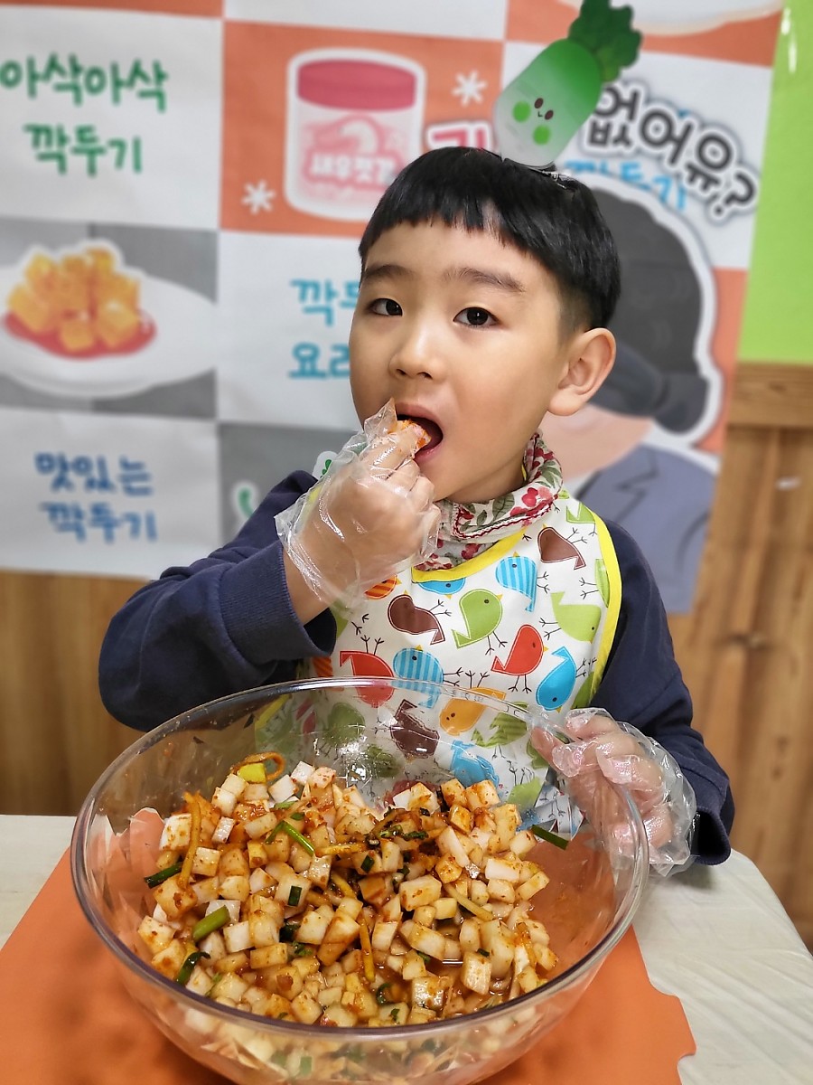 깍두기 담그기 체험 페이지 정보 작성자 하나어린이집 작성일25-12-02 14:00 조회6회 댓글0건 본문 오늘은 아이들과 함께 수확한 무로 맛있는 깍두기 담그기 활동을 했습니다. 우리 전통 음식의 맛과 문화를 자연스럽게 배우고 건강한 먹거리에 대한 관심을 가질 수 있는 소중한 시간이었습니다. 댓글목록 등록된 댓글이 없습니다. 목록