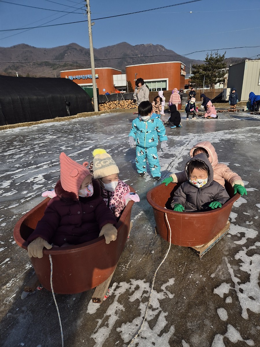 차가운 공기 속에서도 아이들의 웃음소리는 더욱 반짝이던 하루~ 어린이집 친구들과 함께 감성체험장 얼음 썰매장에 다녀왔어요!