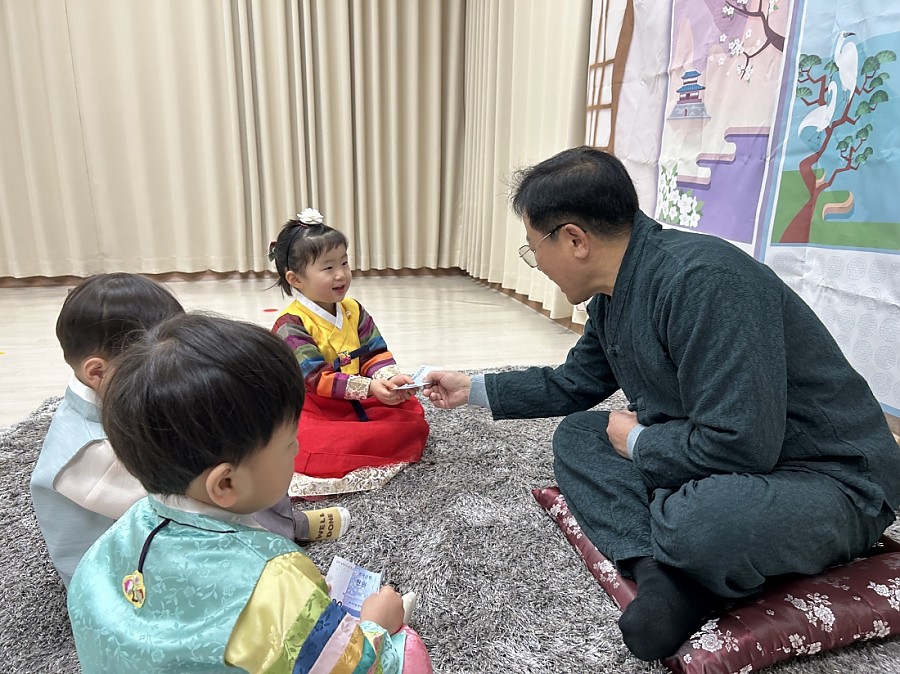 원장님의 따뜻한 덕담을 들은 뒤, 세뱃돈을 두 손으로 공손히 받아 감사 인사를 전하는 모습에서 우리 전통 예절을 배우는 뜻깊은 시간을 느낄 수 있었습니다. 가정에서도 아이들과 함께 즐거운 설 이야기 나누어 보시기 바랍니다.